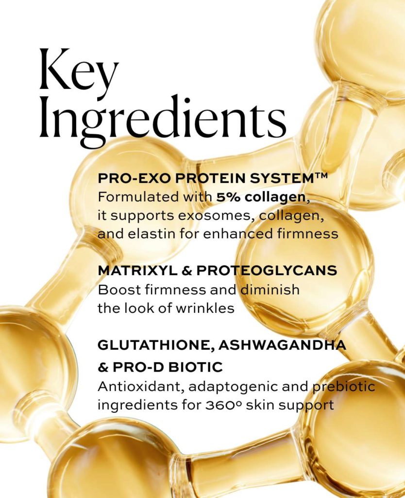 Sercem linii jest innowacyjny Pro-Exo Protein System™ – rewolucyjny kompleks biotechnologiczny o aktywności proegzosomalnej, który pomaga wesprzeć naturalne egzosomy skóry – mikroskopijne struktury pęcherzyków pomagające usprawnić procesy naprawcze i poprawiające wygląd skóry z ubytkami kolagenu. Kompleks zawiera również wysoką koncentrację kolagenu połączonego z aminokwasami i elastyną, które tworzą niezbędną sieć wsparcia strukturalnego skóry. Ta silna proteinowa infuzja działa na wielu poziomach, intensyfikując produkcję kolagenu i elastyny, wzmacniając gęstość, sprężystość i jędrność skóry oraz przywracając jej gładszy, odmłodzony wygląd.
