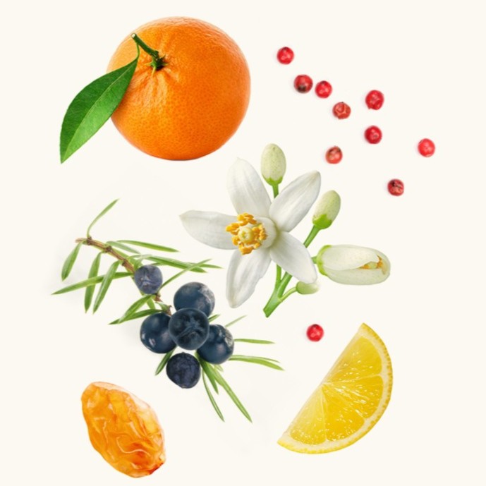W miarę rozwoju zapachu, jałowiec, geranium i neroli nadają mu aromatyczną głębię, równoważąc żywe nuty otwarcia zielono-ziemistą elegancją.