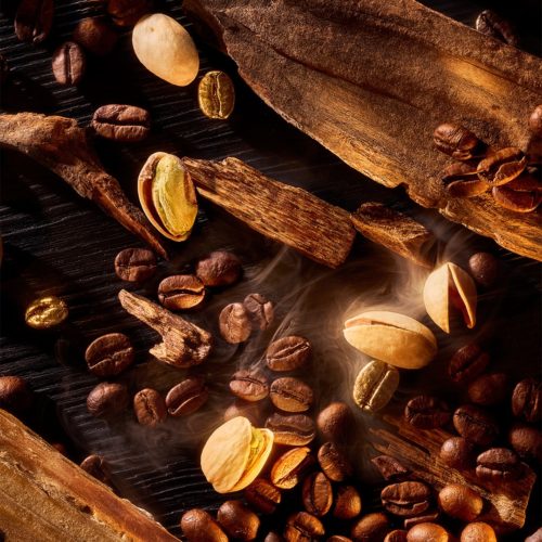 Centralne miejsce kompozycji zajmują palone ziarna kawy, które łącząc się z karmelizowanymi orzechami tworzą kremową i aksamitną fakturę. Podstawę zapachu stanowi ciepła głębia oudu, dodając kompozycji bogactwo i zmysłowość.